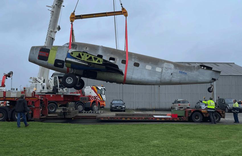 After having worked on it for years, the job being ampler than expected, the plane was bought by a private owner in 2016 and transported by an exceptional convoy to EBSG on January 5 and 6, 2023.